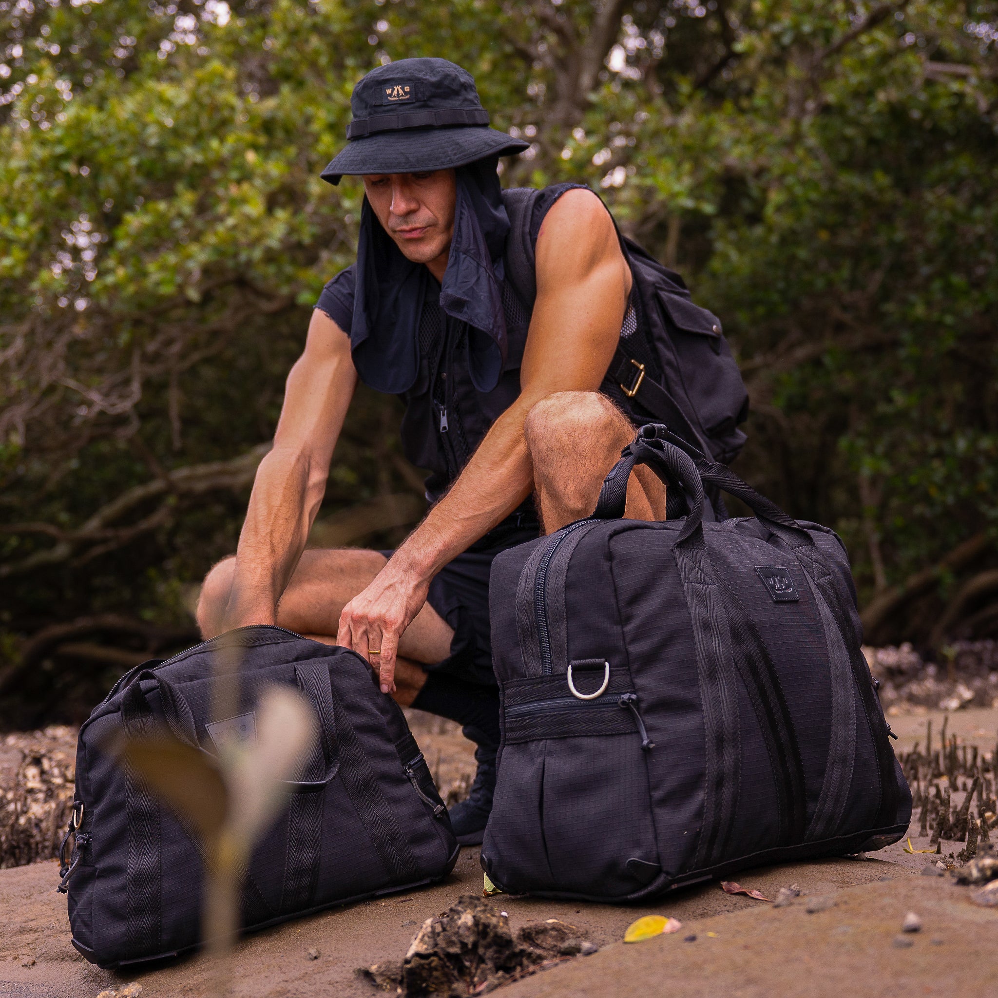 You drop it in the sand off the Hip Strip before walking down to the water. Red Stripe sweating in your hand. Salt air pushing in from the Caribbean Sea. Later, it is in the back of a route taxi heading east, windows open, music low and steady. The ripstop tarpaulin takes the knocks without complaint. Brass fittings dull slightly in the humidity. Good.